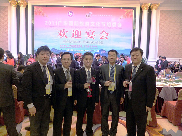 2011广东国际旅游节 刘晓捷省府副秘书长(中),广东省侨办副主任郑建民(左2),朱铭江会长(左1)