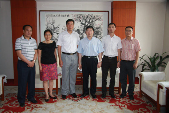 6月14日,许又声、任启亮副主任在办内会见了江门市外事侨务局新任局长梁富鸣一行。
